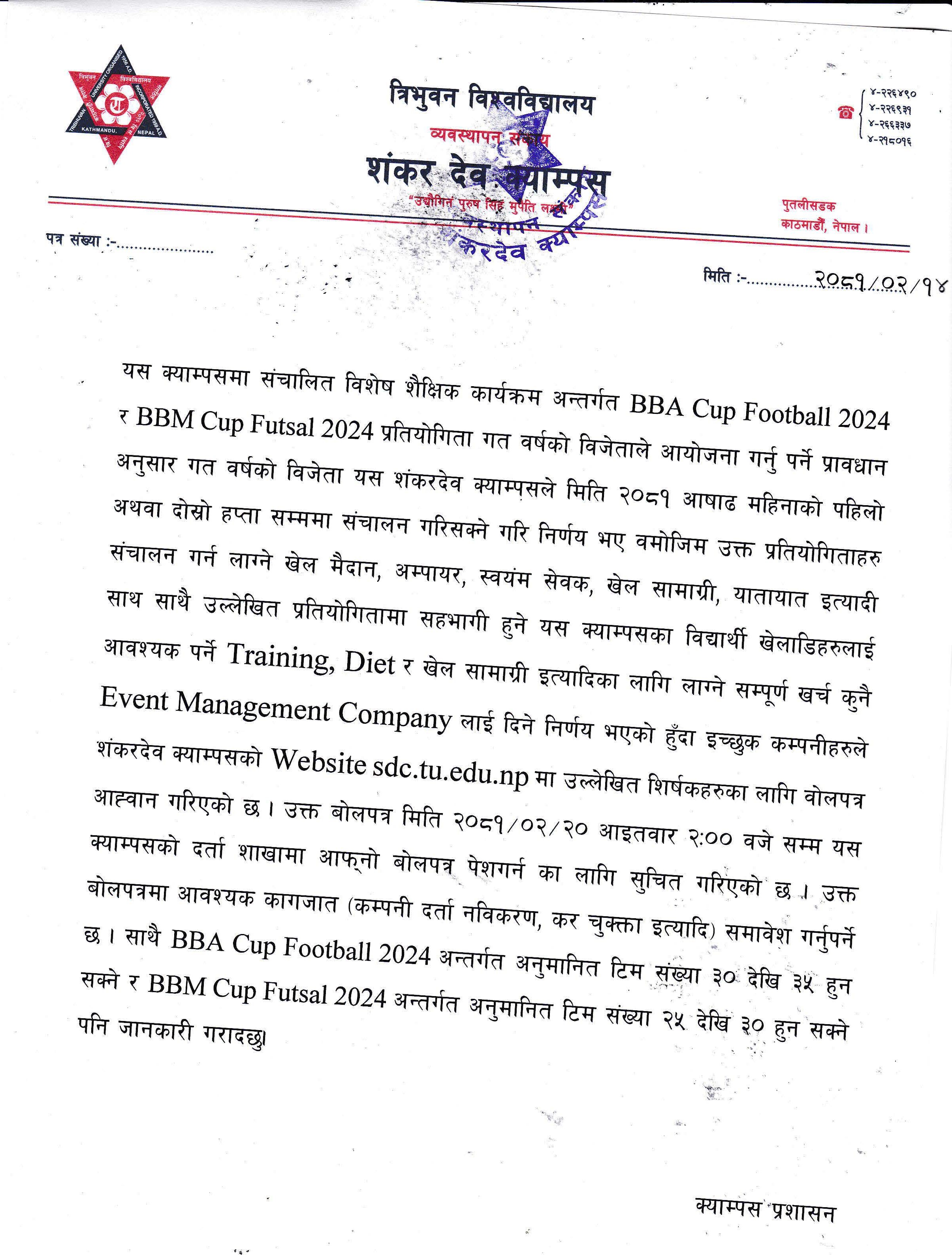 बोलपत्र आह्वानको सूचना (शंकर देव क्याम्पस)