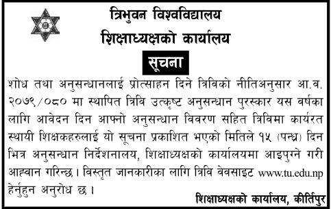 त्रिवि उत्कृष्ट अनुसन्धान पुरस्कार २०८१ को सूचना