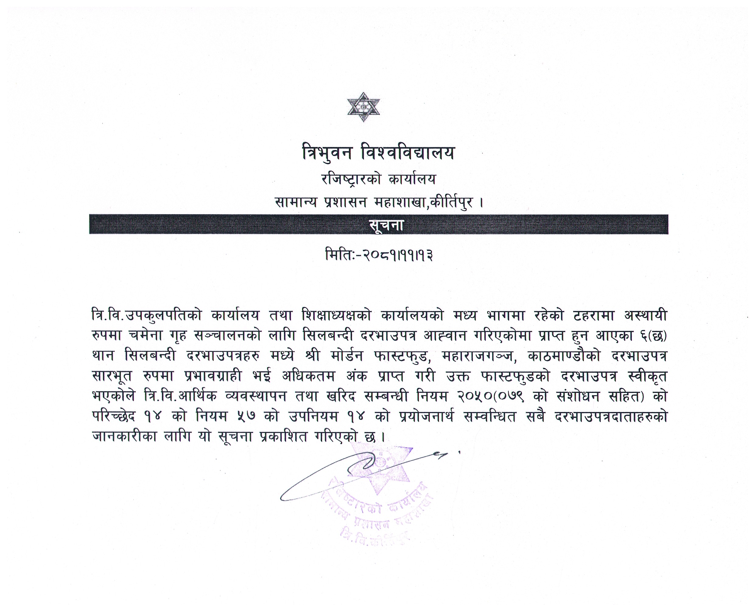 समन्वय महाशाखाको दरभाउ पेश गर्ने सूचना