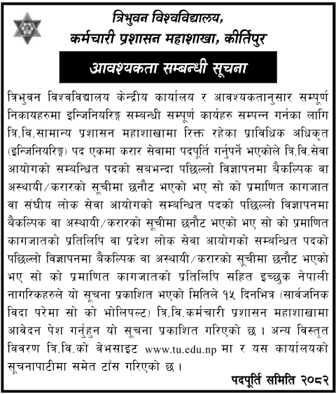 कर्मचारी प्रशासन महाशाखाको आवश्यकता सम्बन्धी सूचना