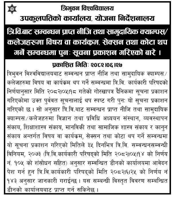 त्रिवि योजना निर्देशनालयको सूचना